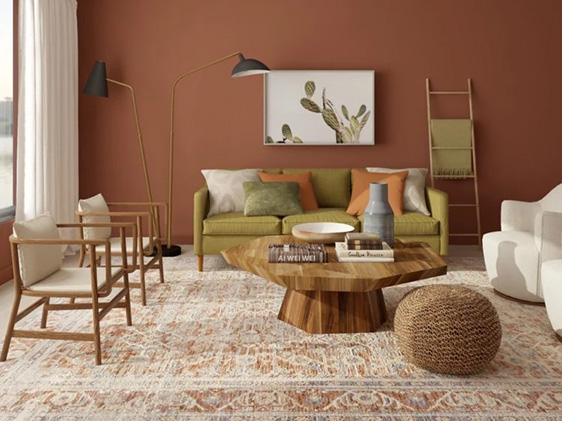 Entre los favoritos de esta vertiente se encuentran el terracota, que inmediatamente nos recuerda a las tierras arcillosas. Su gran protagonismo junto a la madera y las fibras naturales construyen un ambiente sumamente hogareño, cálido y rústico.