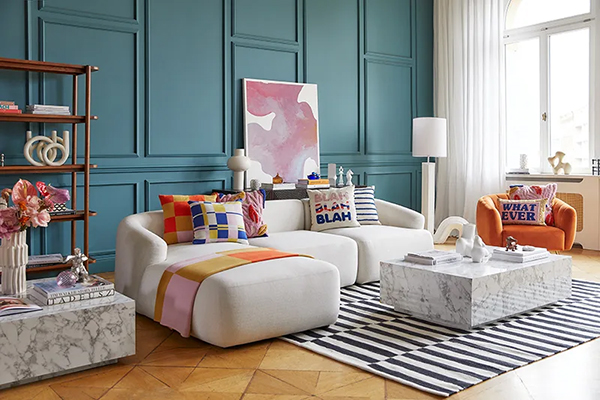 Y en el polo opuesto de la tendencia anterior, surge una que persigue otras sensaciones, busca crear espacios vibrantes y positivos que puedan reflejar tu personalidad. Los colores saturados y los estampados serán la clave para lograr ambientes audaces y divertidos que hablen de quien los habita.