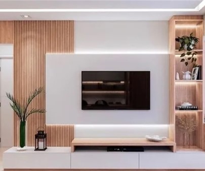Una buena opción para estos paneles es sumarle un revestimiento texturado, para darle destaque y diseño al soporte de la pantalla. Si los paneles son de madera, se recomienda aplicar previamente una base para madera antes de revestir con Revear.