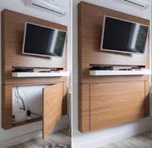 Existe otra gran solución para los que reniegan de la presencia de este dispositivo, pero tampoco pueden prescindir de él: que esté, pero que no se vea. Utilizando puertas deslizables /corredizas se puede ocultar y dejarla a la vista solo al momento de usarla.